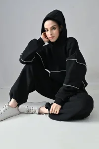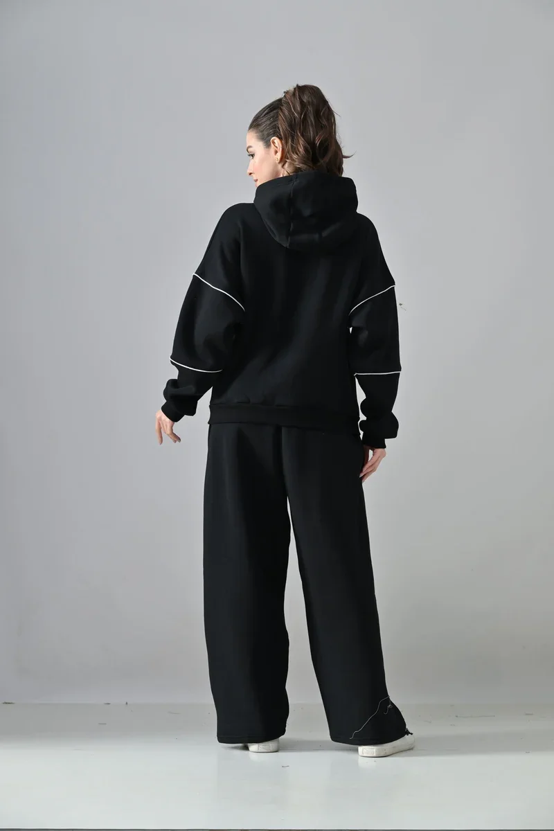 Introducing our stylish Fleece oversized hoodie co-ord set for ultimate comfort and sleek style. Whether you're running errands or lounging around, these joggers are perfect for any occasion. Made with high-quality fabric, they offer a comfortable fit and durable performance. With multiple pockets, you can easily carry all your essentials while on the go. Embrace the fragrance of confidence and step out in style with our Piping detailed Black Fleece oversized hoodie Co-ord Set.